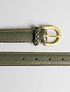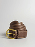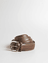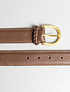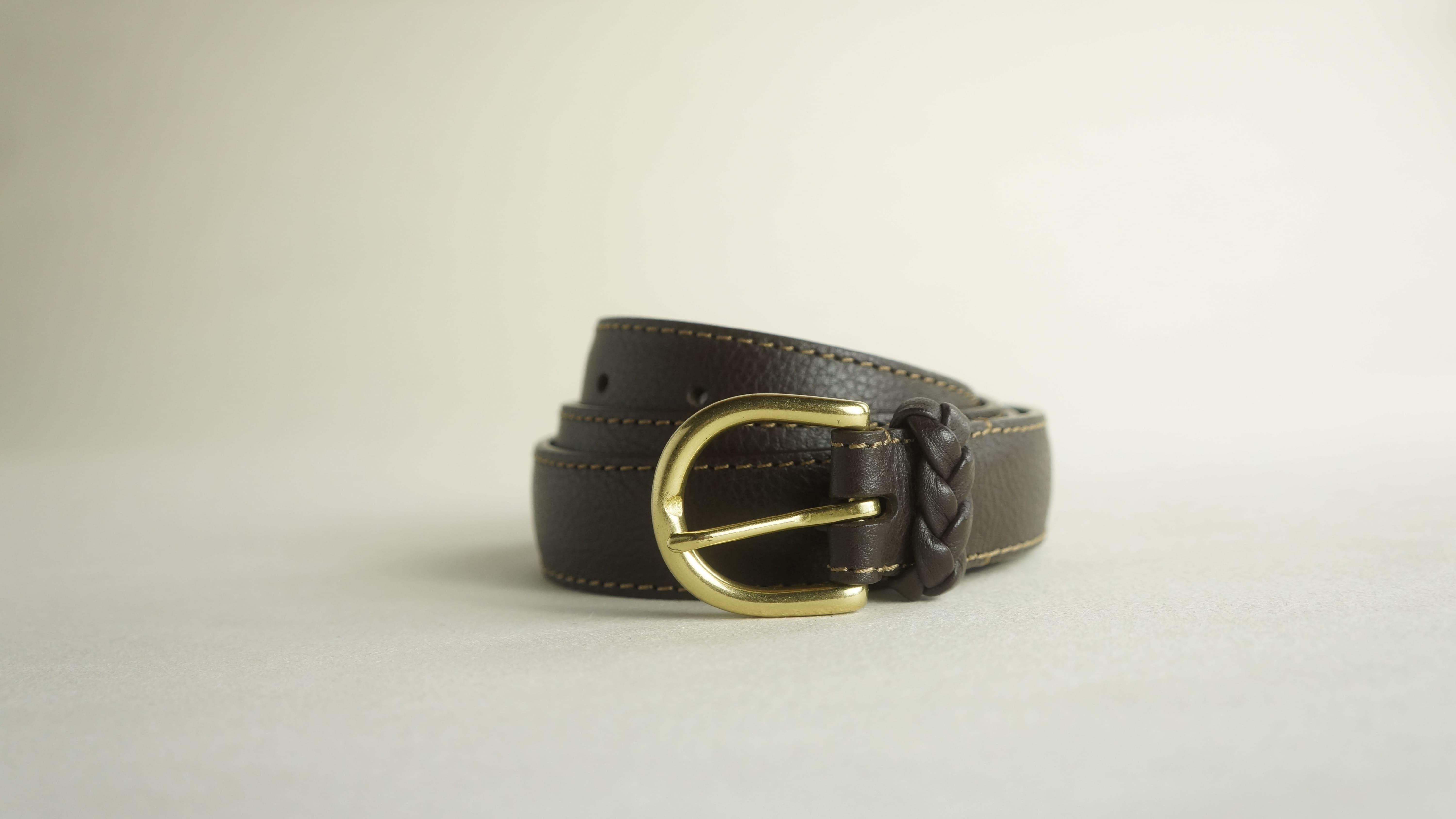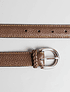 Women's belt in smooth leather, with imported metal buckle and braided barrette.