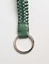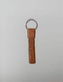 Llavero de trenza plana con argolla metálica, Elaborado en cuero napa vegetal, Técnica: Tejido en cuero.